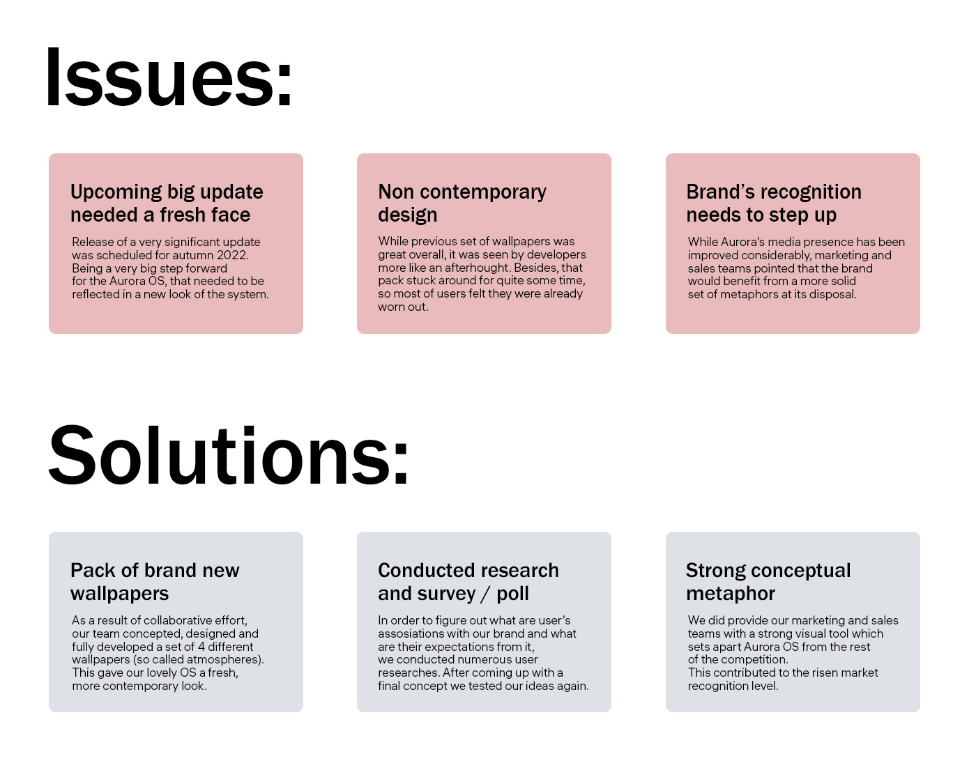 Aurora OS is a Linux-based smartphone operating system derived from Finnish Sailfish OS. The operating system has its own application store and it is integrated with the majority of government's infrastructure. I had an honour to participate and help with developing such an integral part of the OS Aurora. While, not all of these solutions were implemented and made it to the final release, I still feel like it was a decent effort.